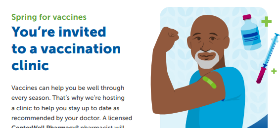 A targeted patient flyer, letter and envelope promoting vaccination clinics for the Kansas and Missouri markets surpassed the benchmark of 30 vaccinations per event for all 6 clinics.
